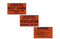 MSA ammonia identification principal door signs are placed at all entrances to machinery rooms. Our identification signs are specifically designed to provide a clear hazard warning for employees in food processing plants, mills and cold storage facilities.